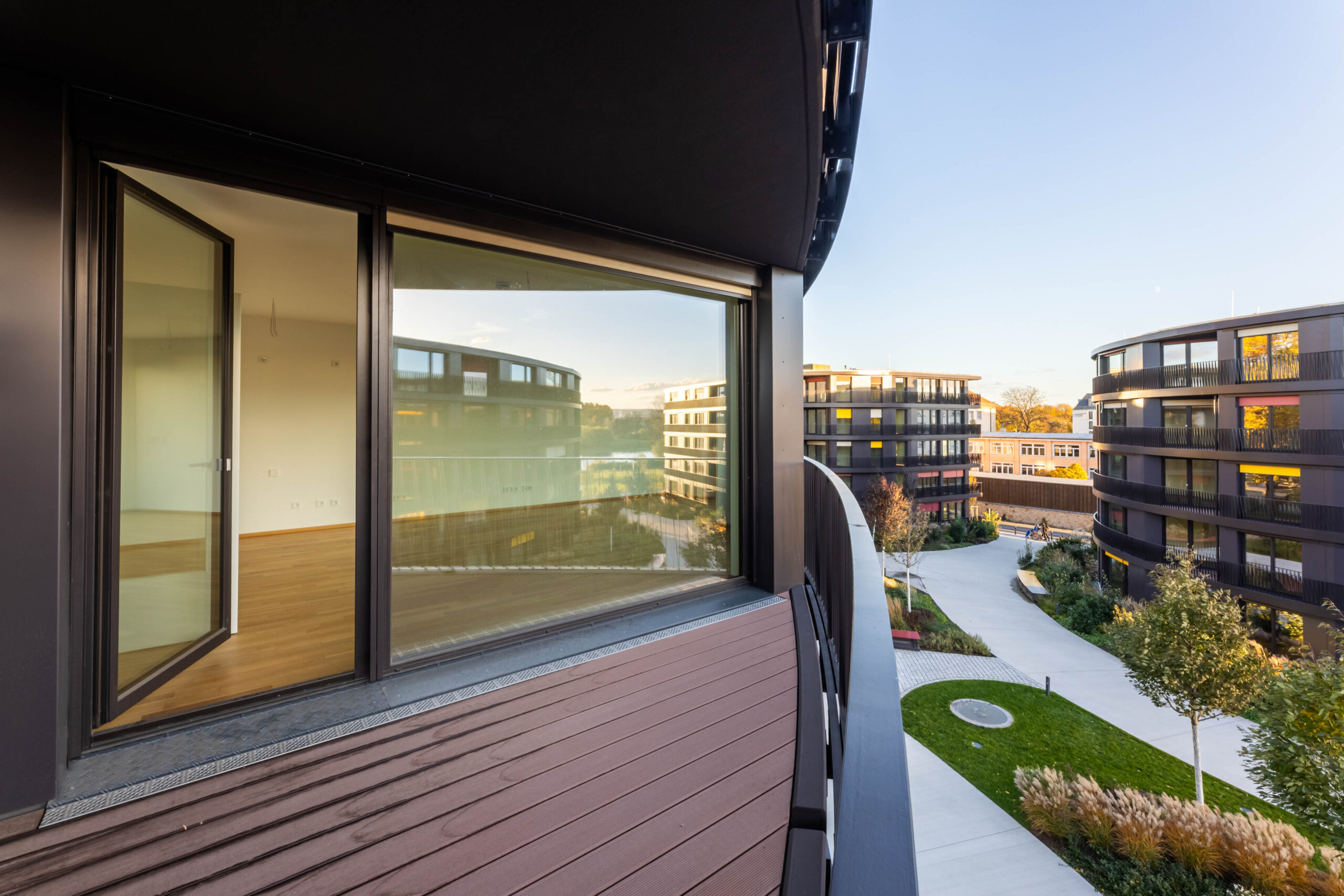 • Große Loggien mit Umgebungsbeleuchtung und WPC-Böden